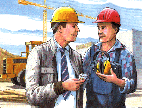 Praktische Ausbildung: Nach der Unterweisung auf einer aktiven Baustelle mit dem Ausbilder