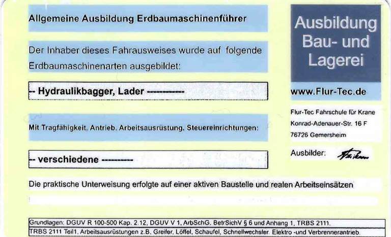 Einen von der Berufsgenossenschaft anerkannten Fahrausweis erhalten Sie nur, wenn die Ausbildung nach deren Grundsätze absolviert wurde. Einen Nachweis muss im Regressfall der Unternehmer sowie der Ausbildungsbetrieb dokumentieren können.